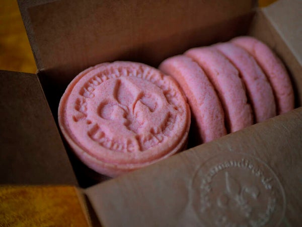 Ingrédients : Farine de blé, sucre blanc, beurre doux, œufs, farine de riz, sirop de fraise, arôme fraise , gingembre, colorant alimentaire naturel.